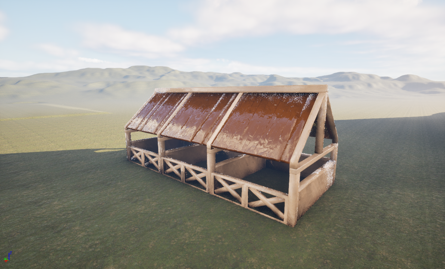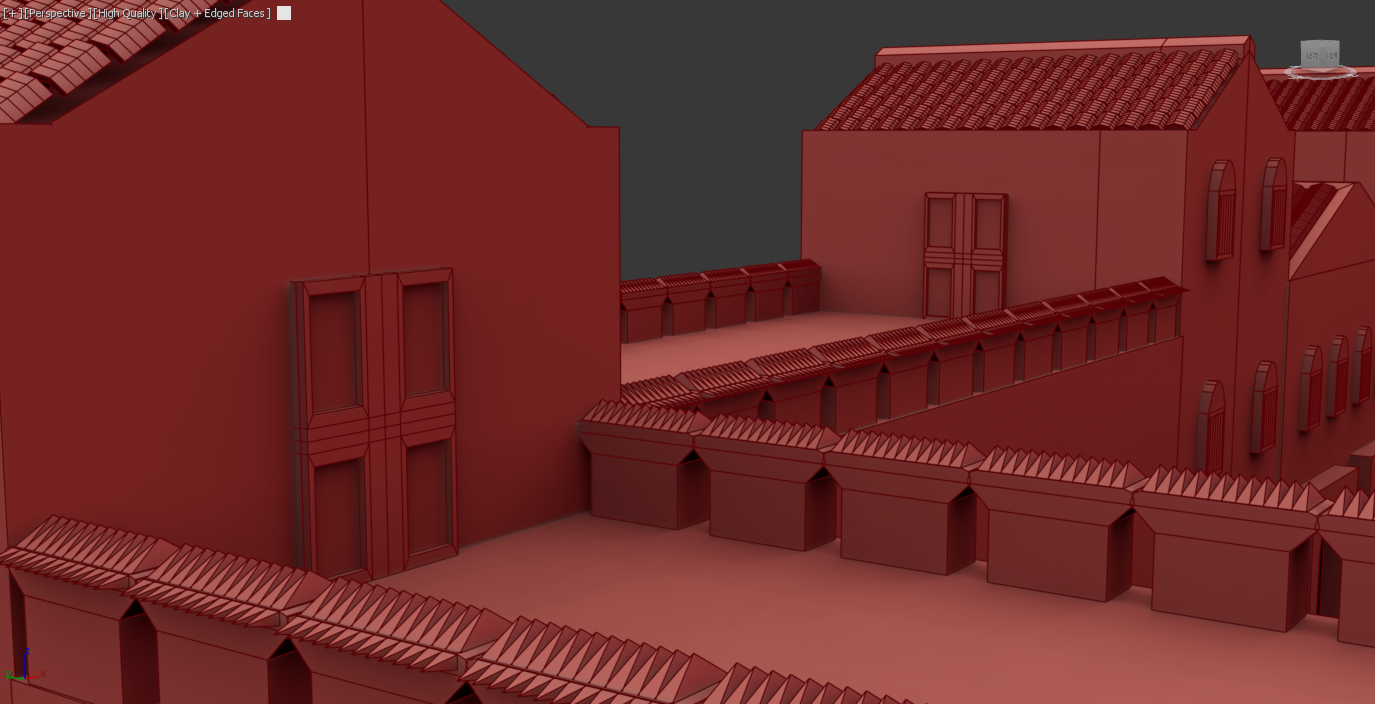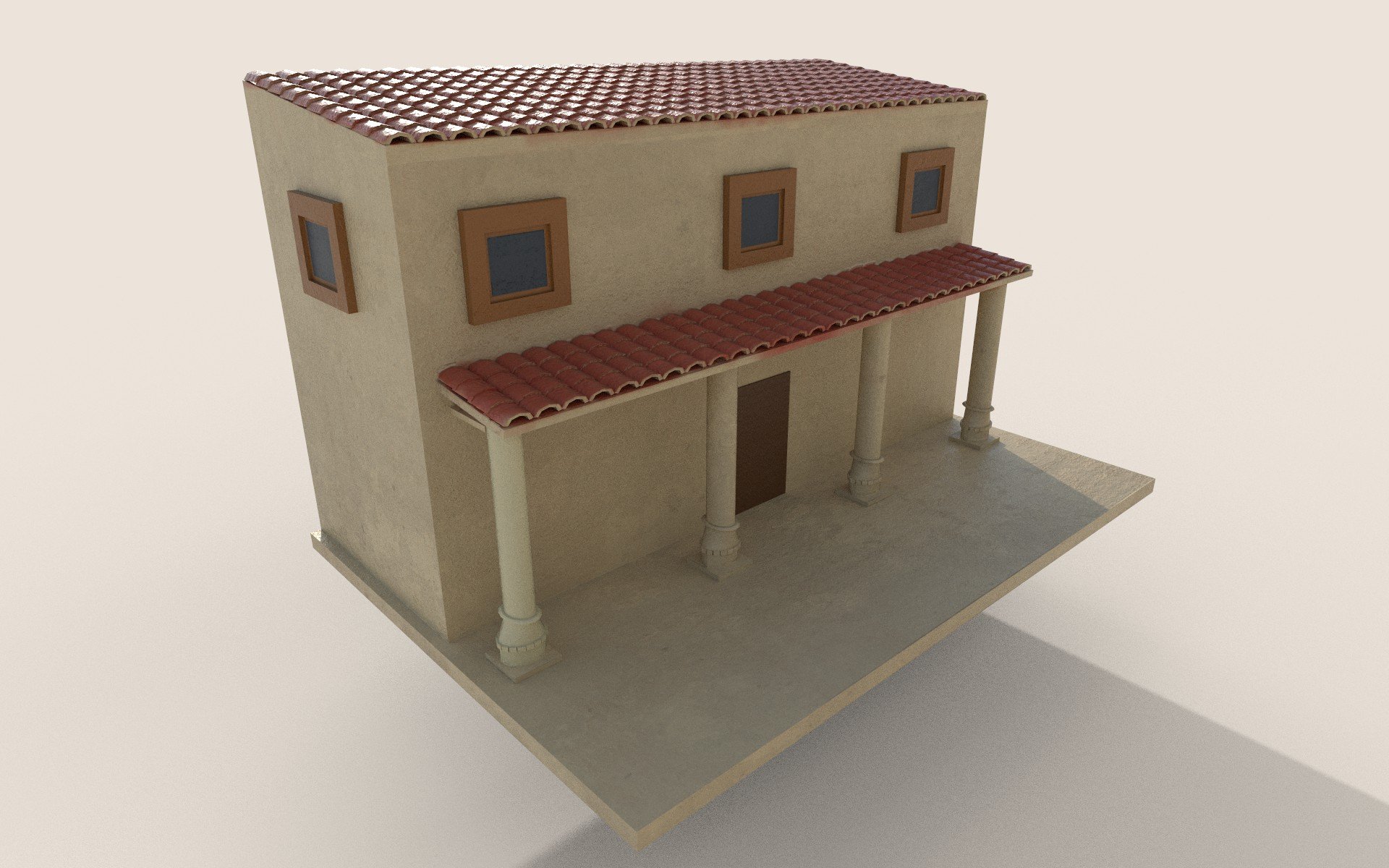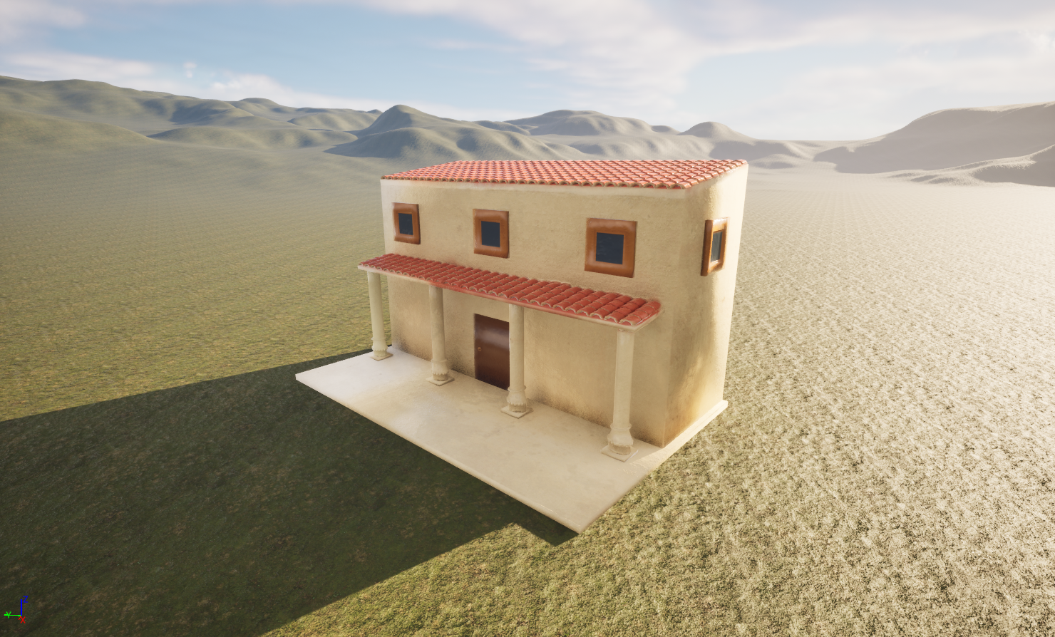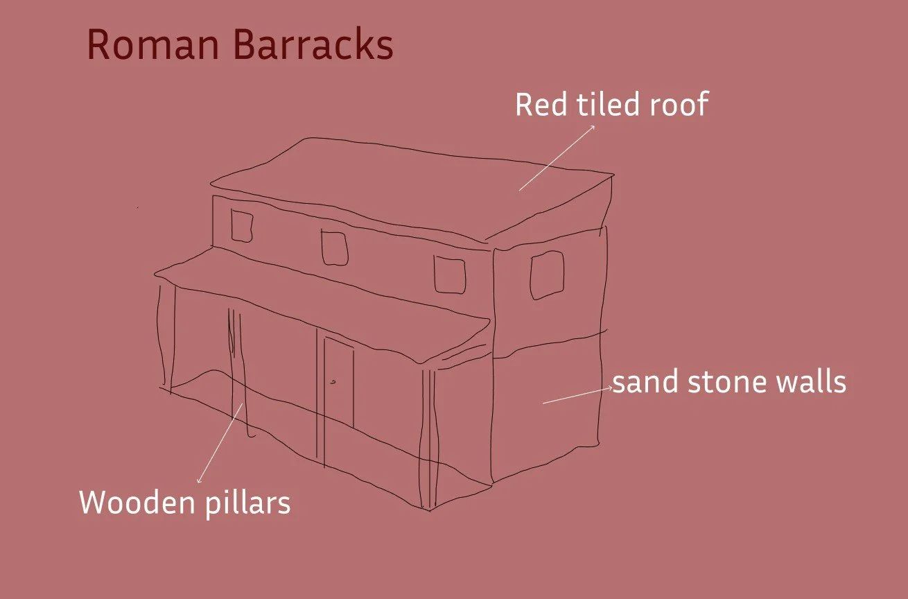 The Roman barracks development began by creating a slanted roof that could then create a different feeling compared to the simple flat roof design. This design choice was influenced in this way because of its visual detail and the opportunity to learn a new skill of modelling tiles, which are a crucial aspect of the reference sketches.