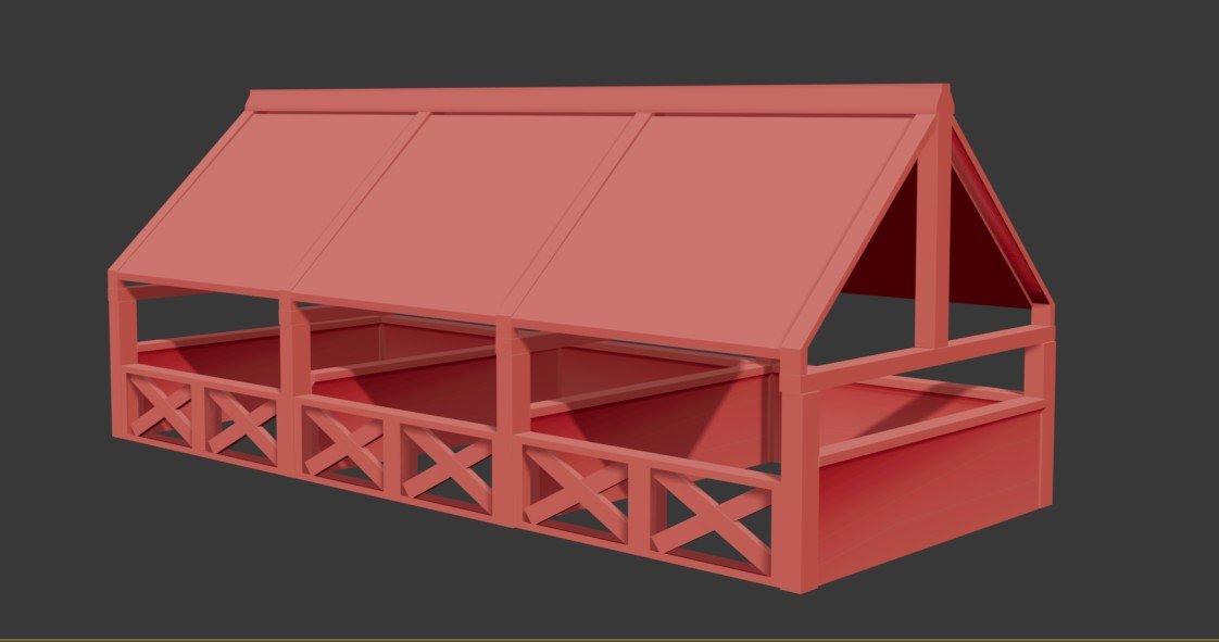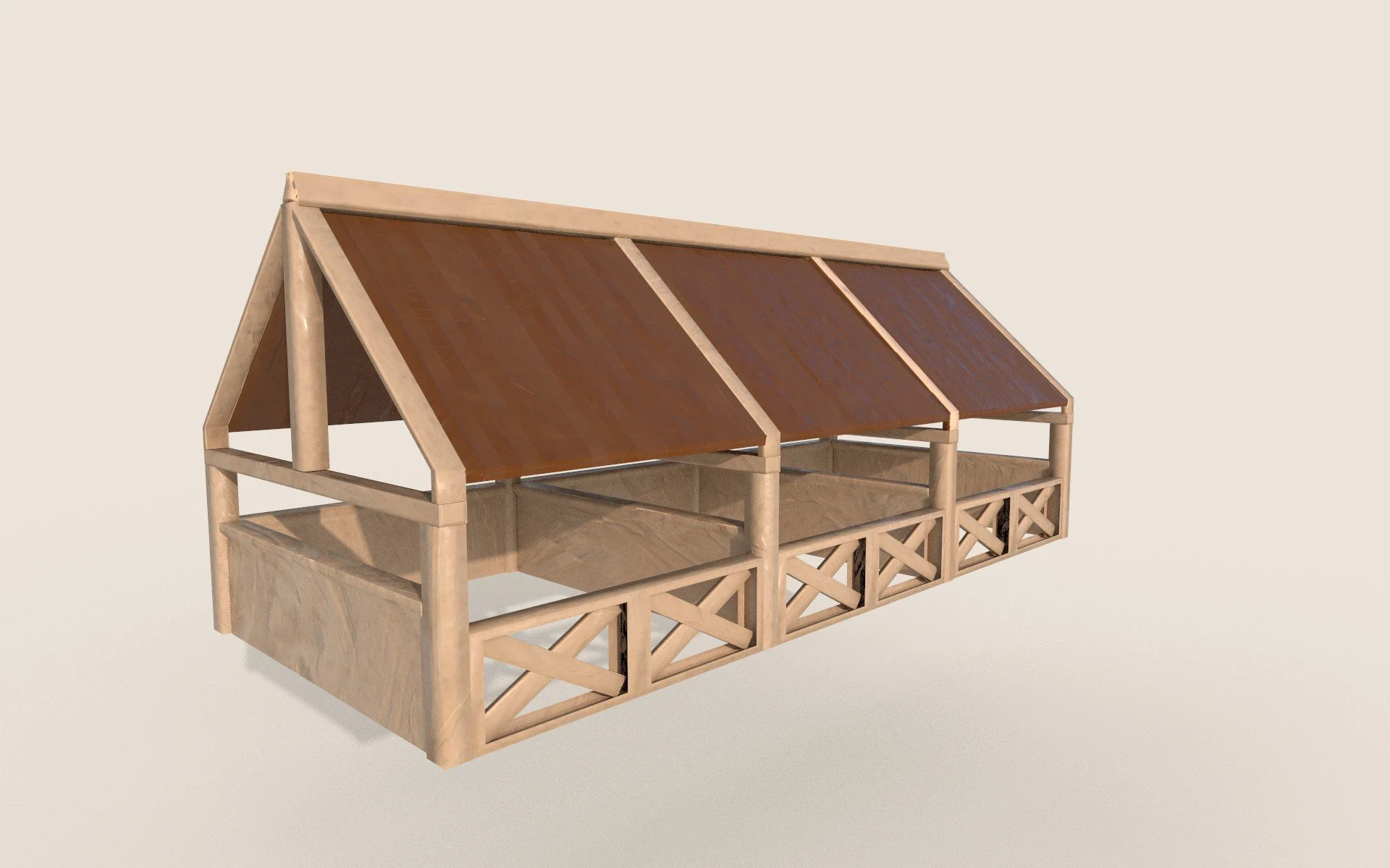 While developing the sketch for the stables, I realised that the model would be quite simple and lacked visual depth. I decided to implement significant changes that still included elements of the original design while introducing new creative decisions. I will explore this task further within the modelling development stage of the project.
