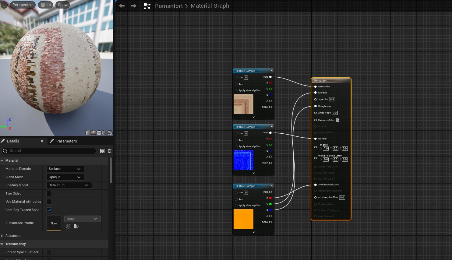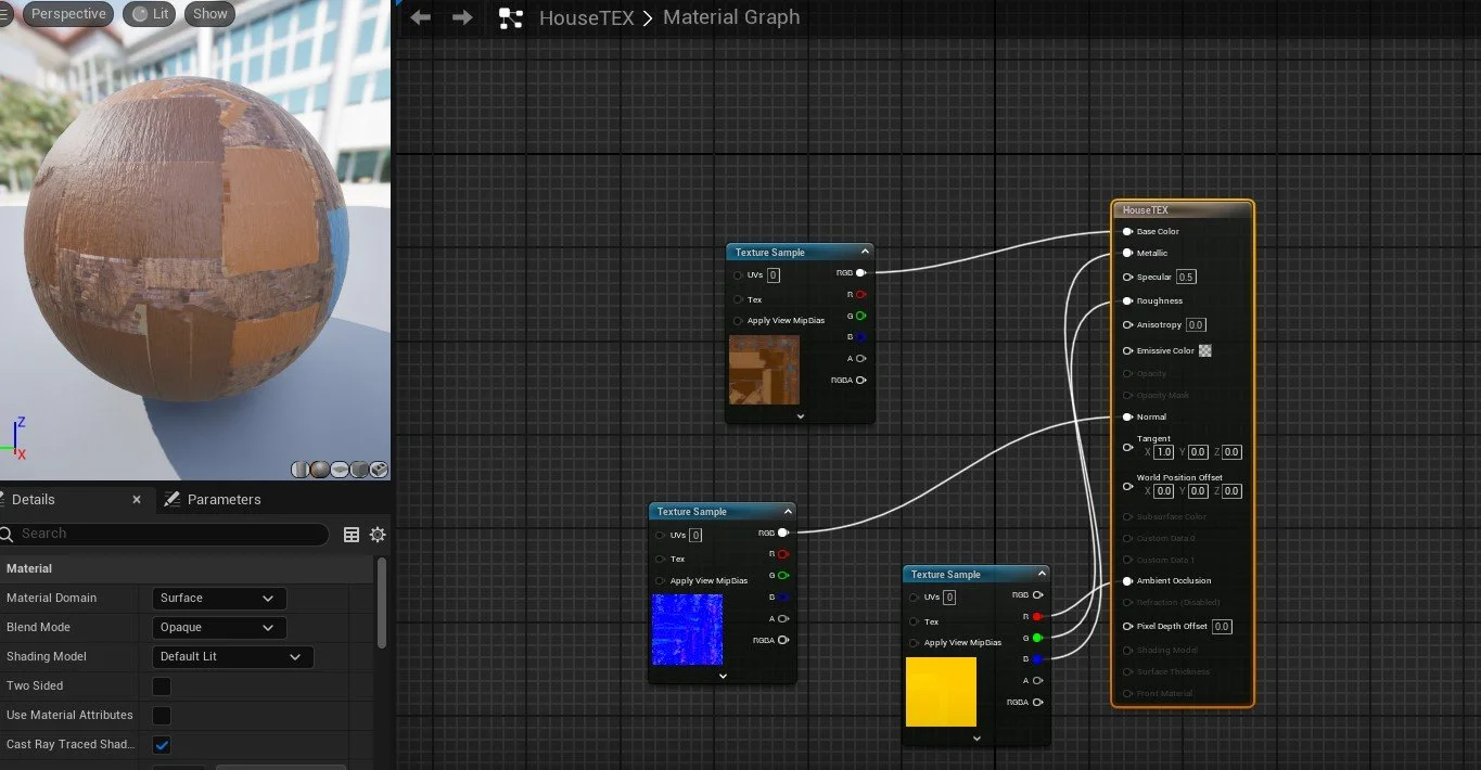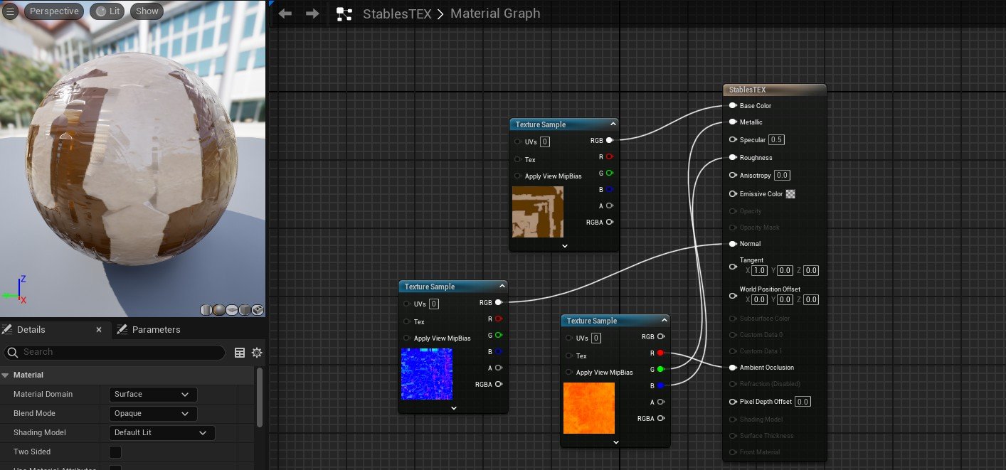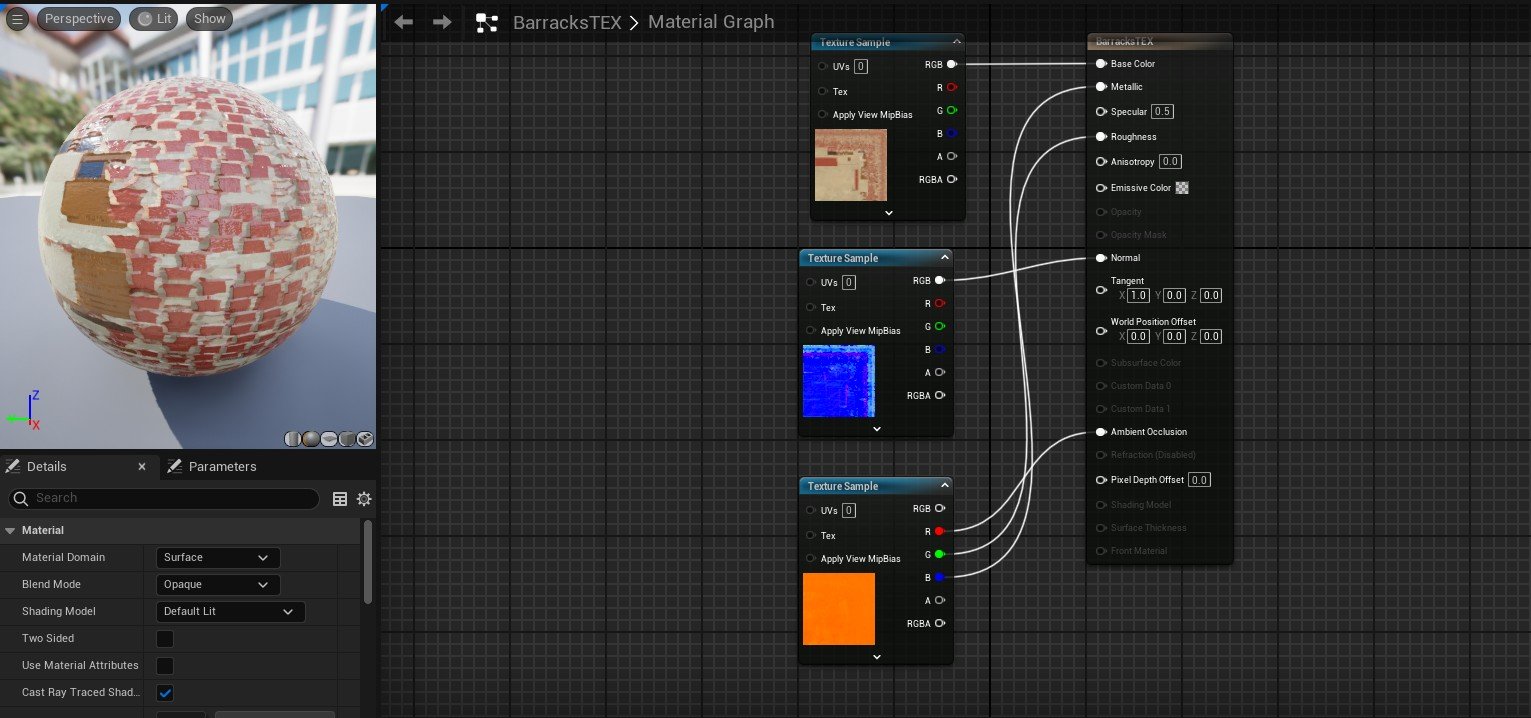 To further this, I tested the model into ue5, and the textures did not reflect the export from Substance. This result convinced me that the bricks were causing more issues than they were worth, and I decided to delete them and focus on improving other key assets to ensure the final model looked as good as it could. Figure (3.5) shows the substance texture, and Figure (3.6) shows the UE5 export.