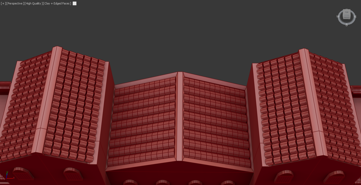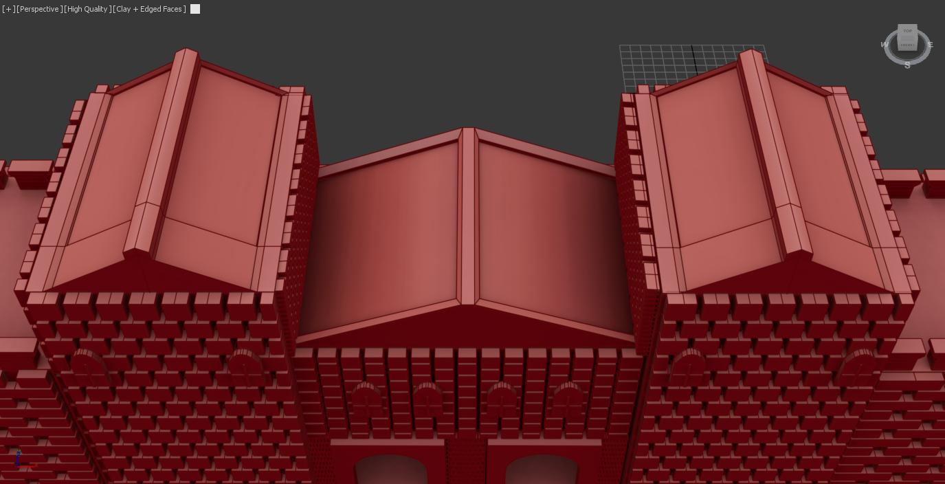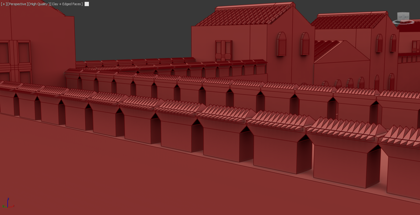 The process for creating the roofs was to follow the same procedure as the tiles within the Roman fort. The tiles were taken from the Roman fort I designed, and this greatly improved efficiency while developing this model, as I was able to avoid the repetitive process of recreating the asset. The only challenge with this was to scale and resize the asset down to fit the barracks. Once the tile was scaled and placed began to use the array tool to efficiently duplicate the asset along both sections. This process not only supported the reusability of assets while also maintaining historical realism.