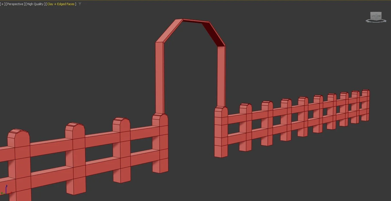 The fence also contained an arch, which was to allow the stakeholder to move in other directions. This design was designed by extruding the top face of the fence, which could be connected using the bridge tool.