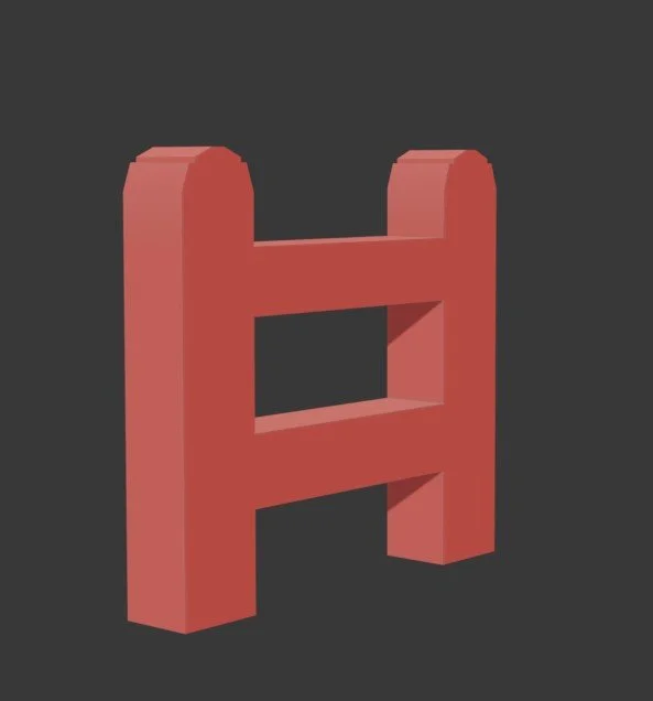 Due to the time constraints and lateness in the project, I decided to go with a basic wooden design. I began by creating two cubes, which both had chamfered curved edges, which could then be cloned and attached.