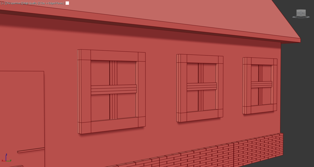 The windows were developed by using two cubes; the design began by adding a swift loop to each of the corners. I was then able to extrude the shape inwards, which creates the gap to add the window frames. I could have undertaken this by using the original asset to create the frames, but that would have encountered issues that could cause issues with UVs. I also felt this looked much closer to the reference image meaning it was more visually appealing.
