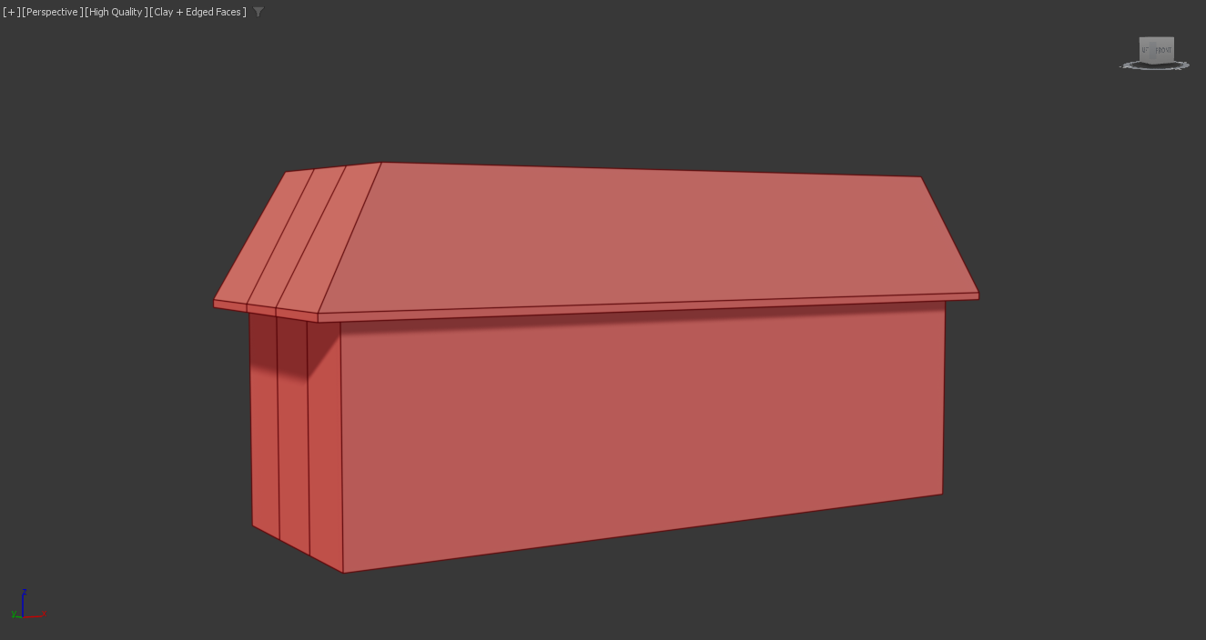 The original design of the stables did not have enough visual appeal, and I decided to make some changes to the structure. The first task was to create the frames for the roof. I began by adding a cube and then creating an angled asset that would connect downwards to create a suitable frame. To avoid the asset looking consistent, I rotated the bottom faces to sit on each edge; the other reason was that the cube was not positioned properly and it made the model look uneven.